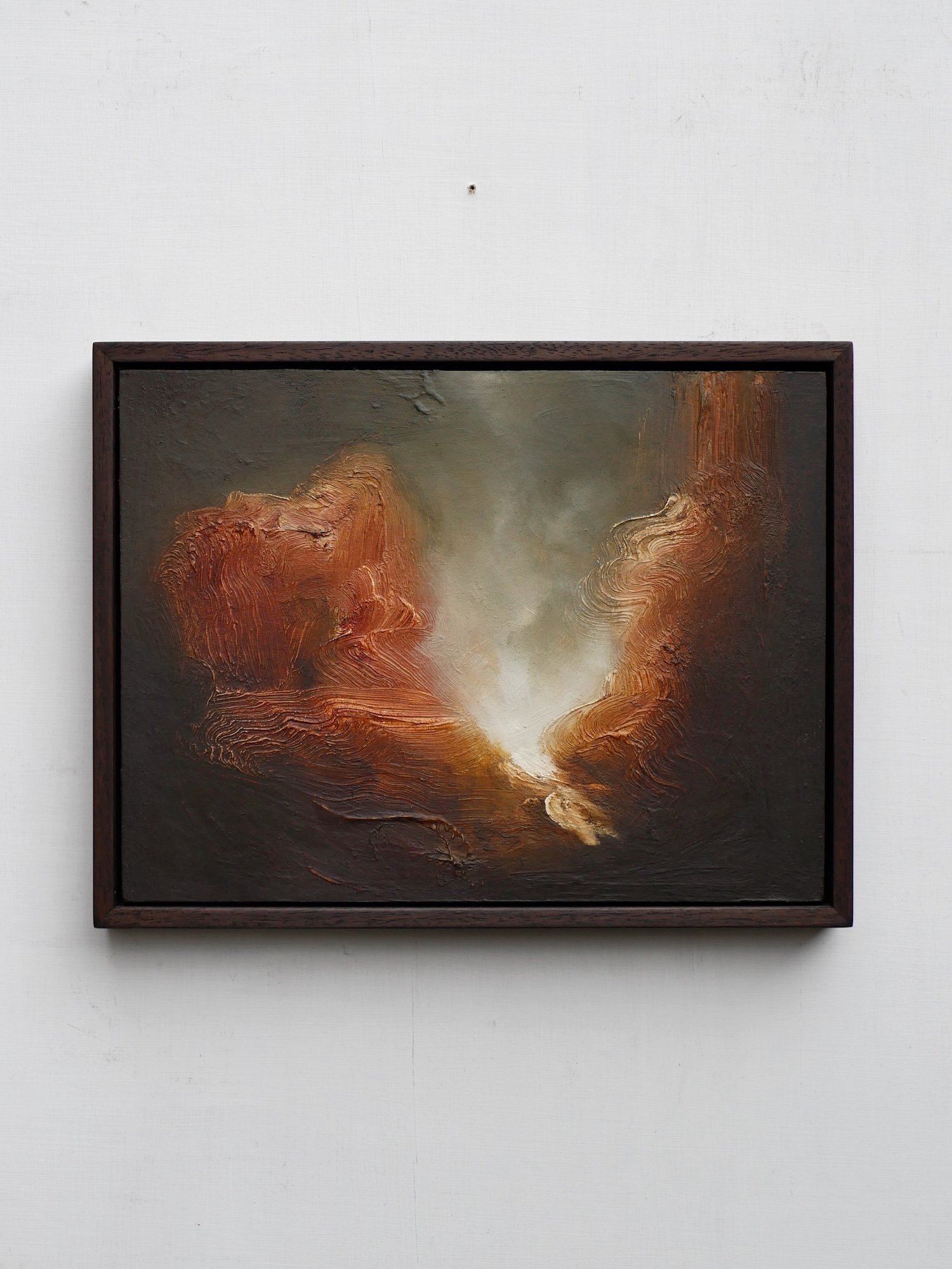 Framed in an obeche wood frame hand-stained with traditional walnut stain.