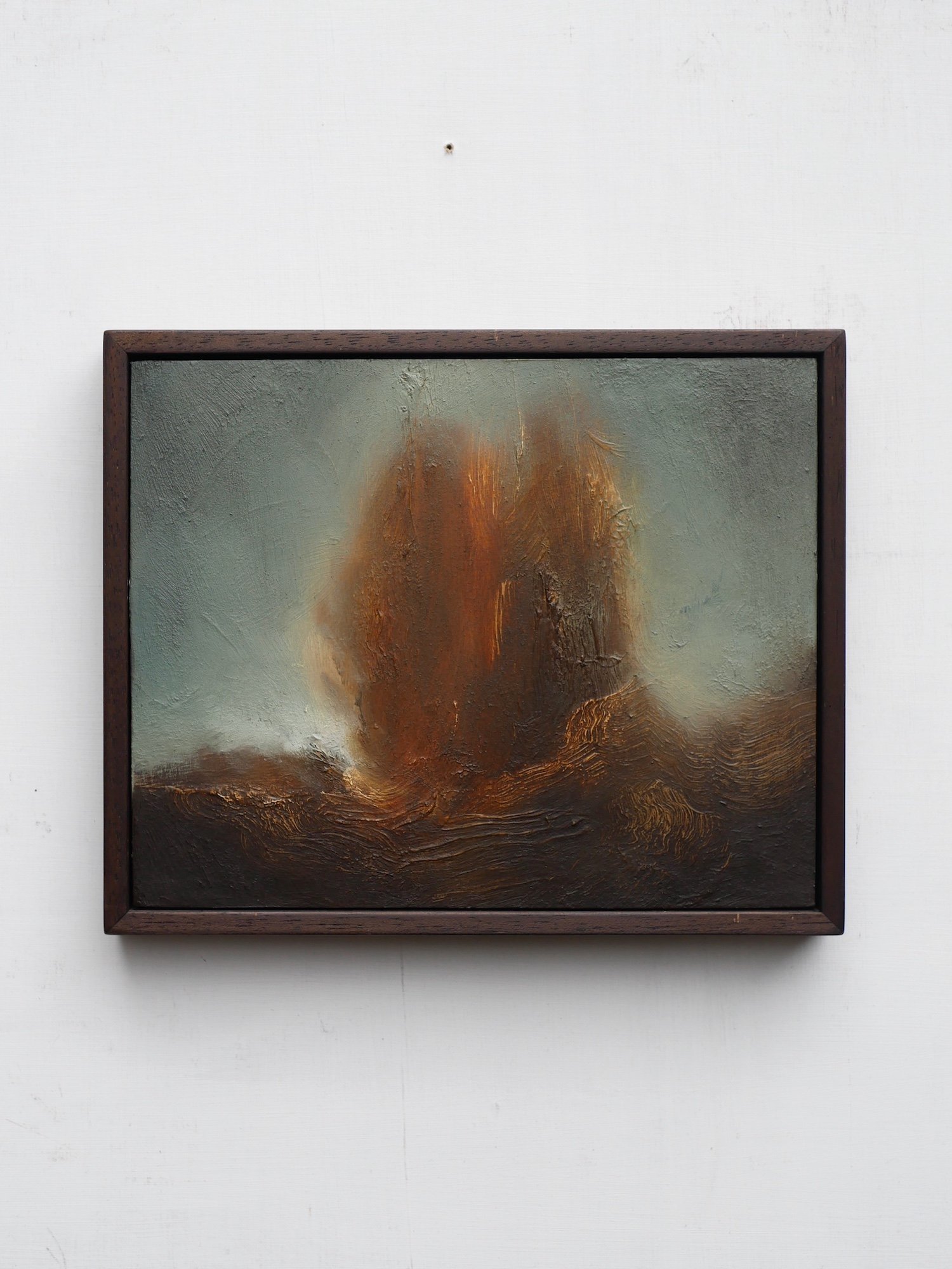 Framed in an obeche wood frame hand-stained with traditional walnut stain.