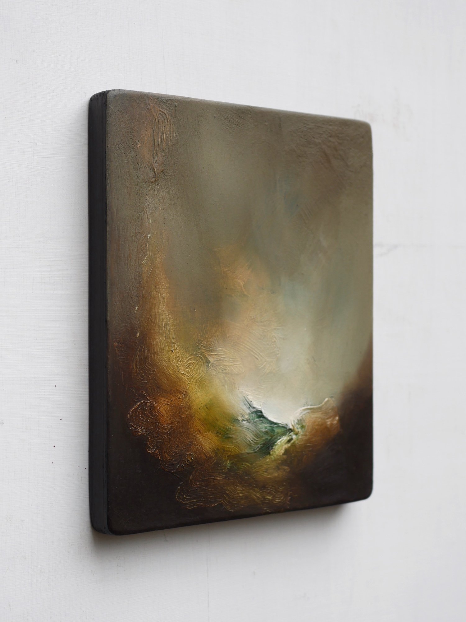 Oil on shaped wooden panel.