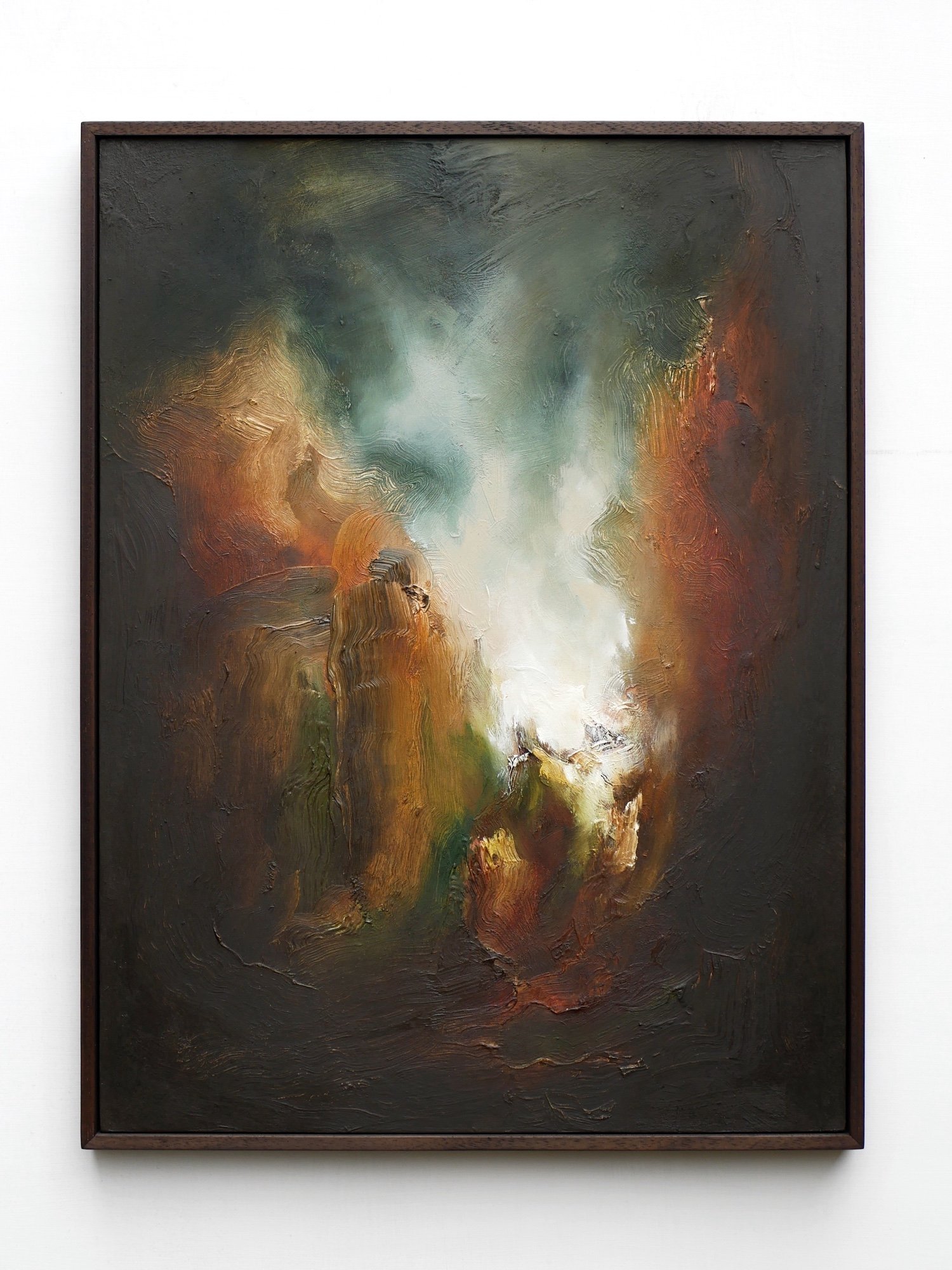 Framed in an obeche wood frame hand-stained with traditional walnut stain.