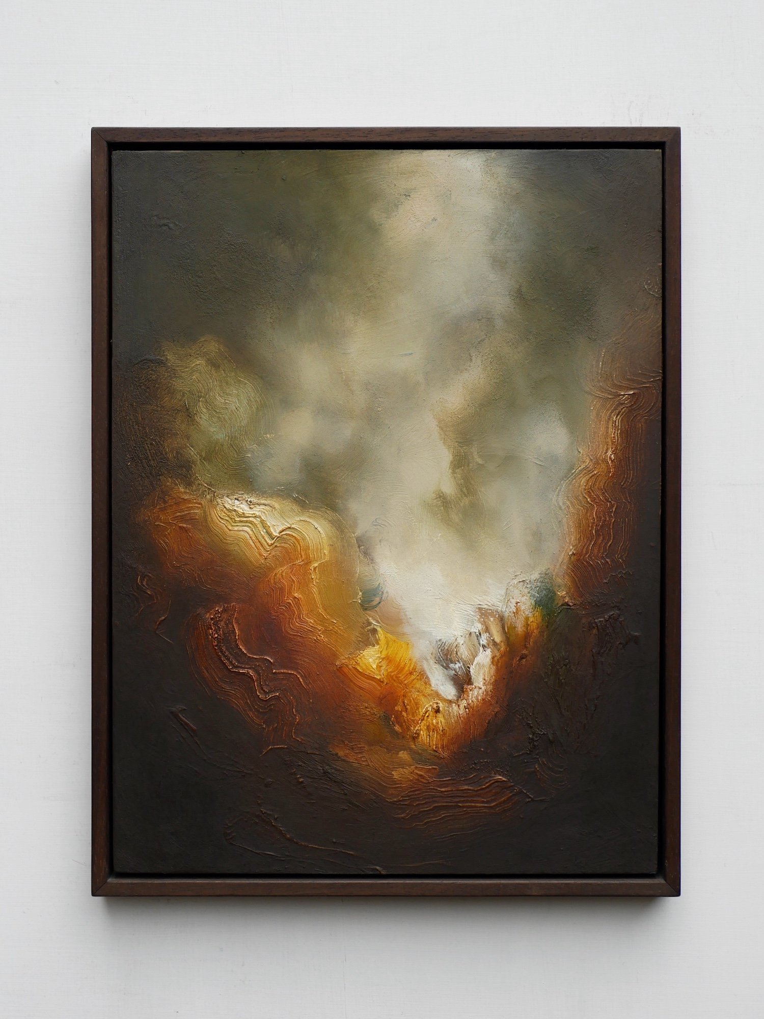 Framed in an obeche wood frame hand-stained with traditional walnut stain.