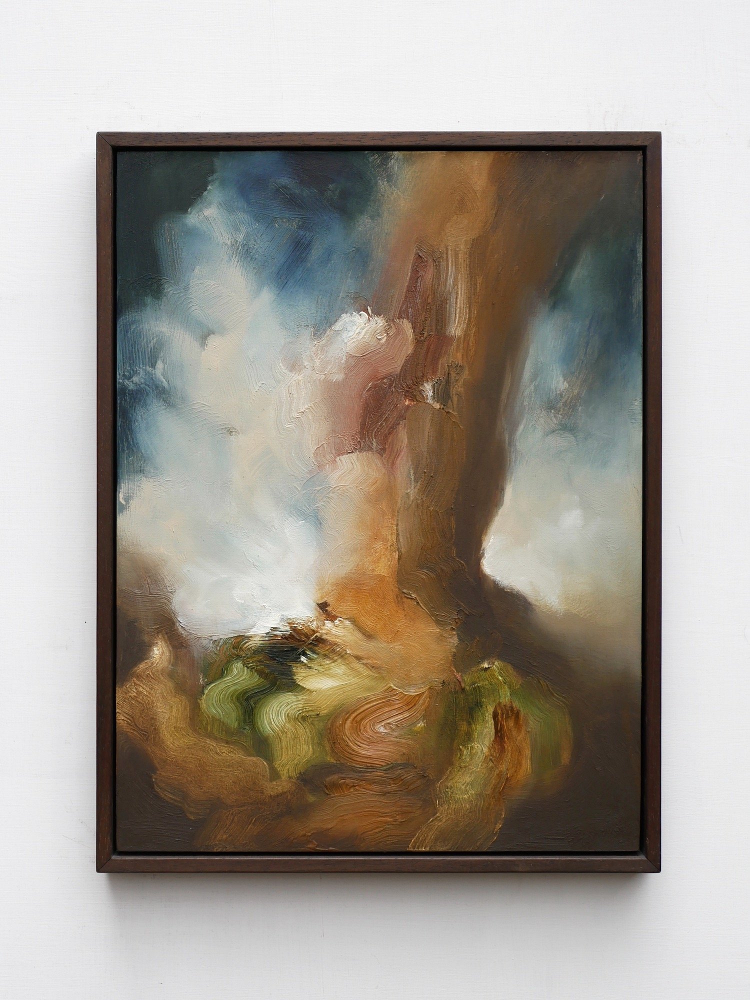 Framed in an obeche wood frame hand-stained with traditional walnut stain.
